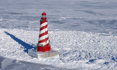 White Shoal Light's iconic red-and-white candy stripe design makes it Michigan's only barber pole lighthouse.