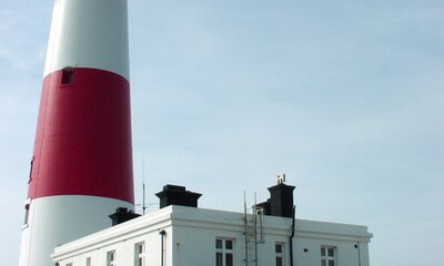 Portland Bill Lighthouse's distinctive red and white stripes help guide vessels through the treacherous English Channel.