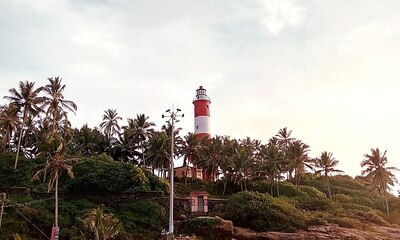 Vizhinjam Lighthouse offers stunning panoramic views of the Arabian Sea, best enjoyed at sunset.