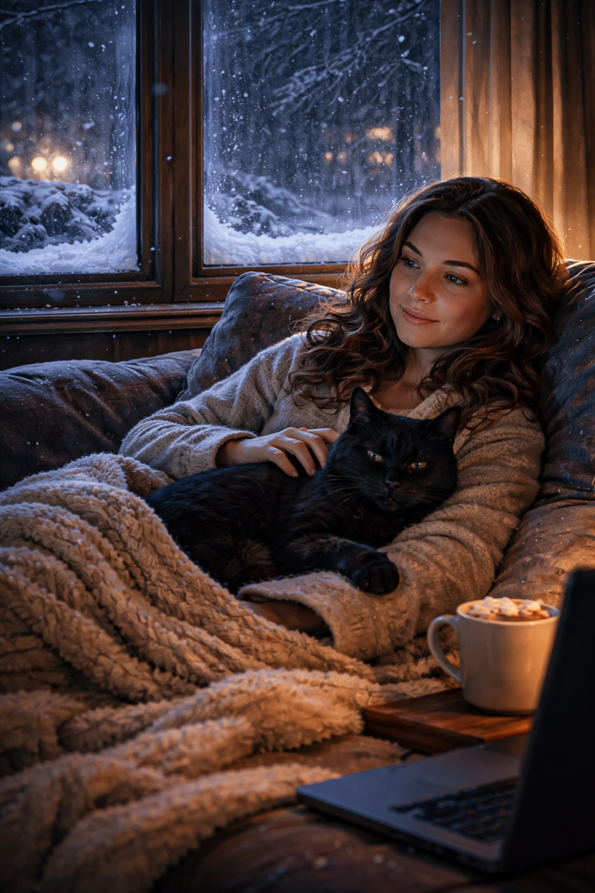 -- I'm nocturnal by nature, and I love watching movies when the world is quiet. Right now we're dealing with a snowstorm combined with freezing temperatures, so I love curling up with my cat under a warm blanket.