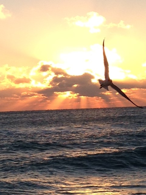 In Hawaii with Kyle. We watched the sunset while swimming in the ocean and watching a humpback breaching over and over