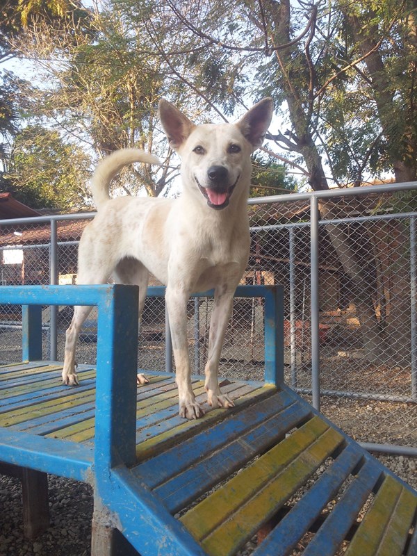 This is Kara! I adopted her from the care for dogs foundation shelter in Chiang Mai, Thailand whilst volunteering there last year. I fell in love with her and I had to find a way to get her home to the UK! It took many months and a lot of cash but she is now here and as happy as can be. <3