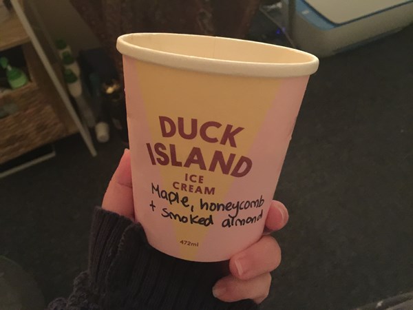 Photo 1: I had taken this photo yesterday to show someone else. Today I finished eating a Maple, honey comb and smoked almond flavoured ice cream that I had brought yesterday from my favourite ice cream shop call Duck Island Ice Cream (NZ). I really loved it because it’s sweet, without it being too sweet. This flavour ice cream can be enjoyed on it’s own or with difference ice cream topping.