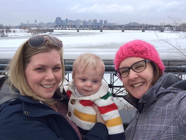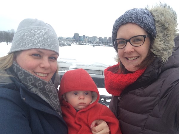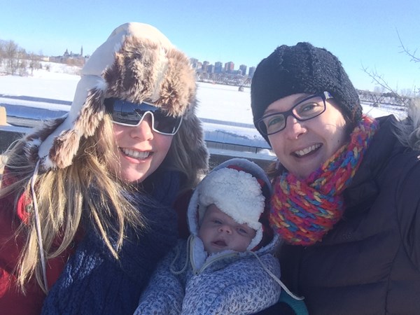 January 2015. Sunny and cold. Nathan is warring the snowsuit his daddy wore at his age.