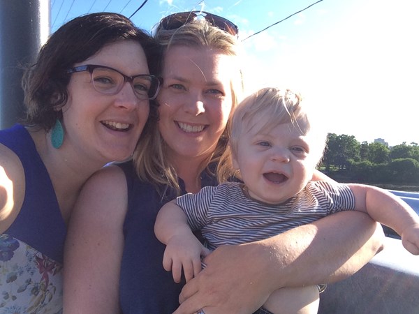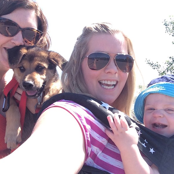 June 2015. 7:30 am. Cheese's first smile for the photo. The morning sun posed a challenge - but we did it!