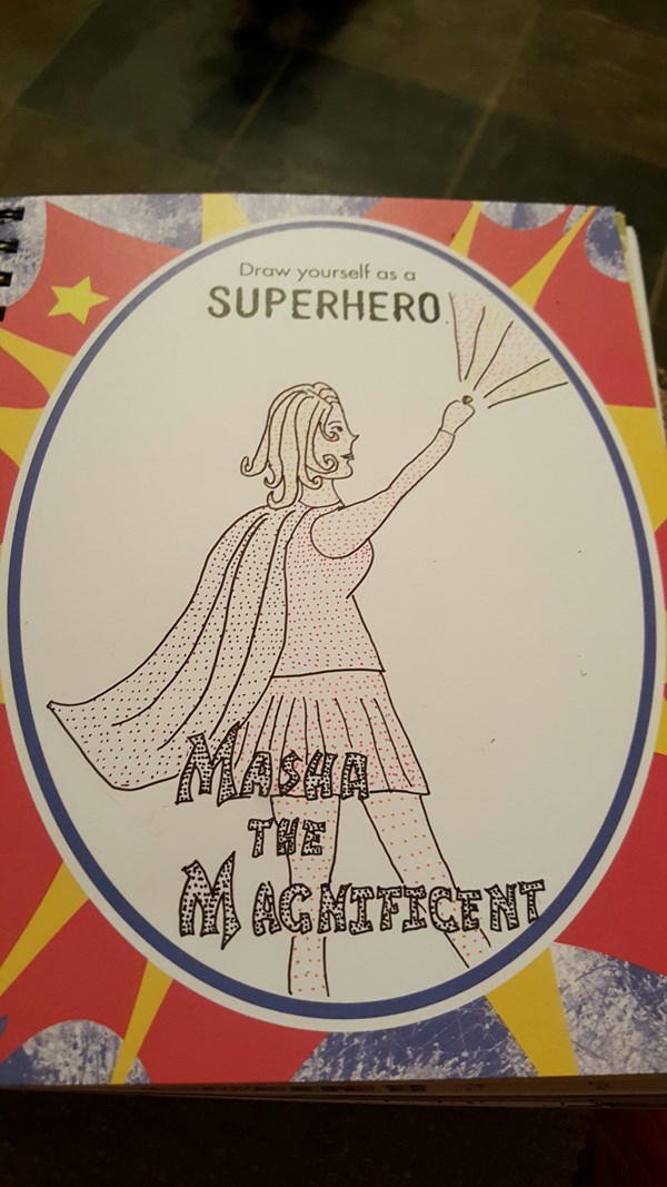 So my friend got me this FANTASTIC sketchbook called "Sketch This" - it has a ton of prompts in it. This is me as a superhero.