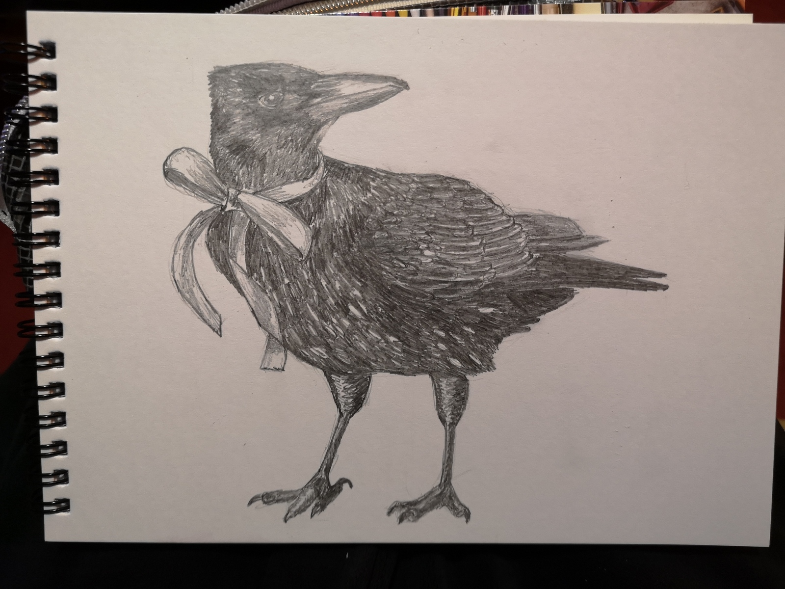 Bought myself a new sketchbook and here's the first page, a crow in a bow!