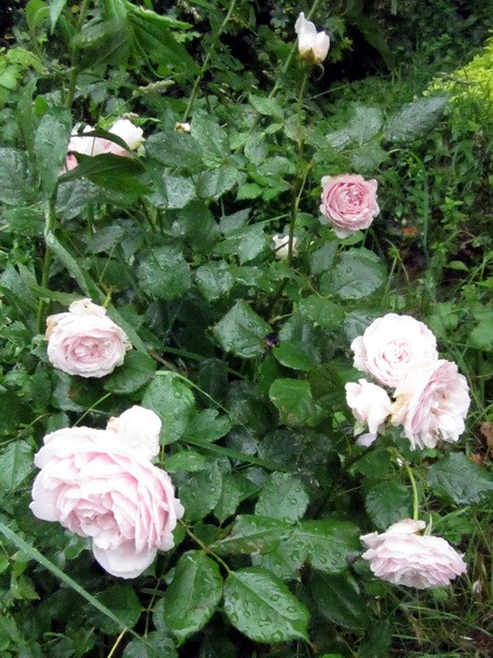2013-06-25: Eben habe ich der Duftrose nicht nur eine Blüte für die Vase geklaut, sondern auch noch ein paar Blütenblätter abgeschüttelt, die jetzt mit denen der gestrigen Rose in Cidre, Zitronensaft und Gelierzucker schwimmen, um sich zu Rosengelee zu vermählen.