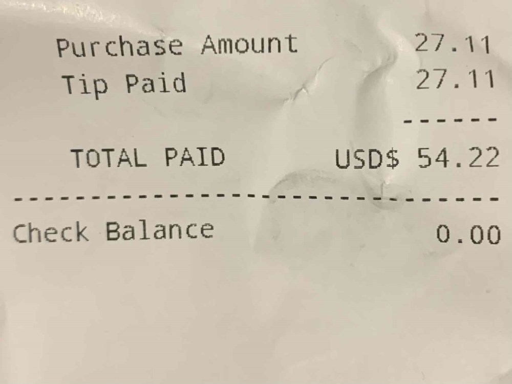 In Washington DC 9/21/13, visited District Chophouse for lunch. Total was $51.87; tipped him 51.87. Rushed out before he could see. He was an attentive waiter, a great conversationalist and I had a feeling he would appreciate it. This was almost as thrilling as skydiving.... almost.