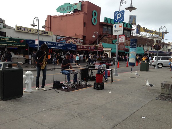 we gave a coin to a man playing guitar and singing that George was really taken with.