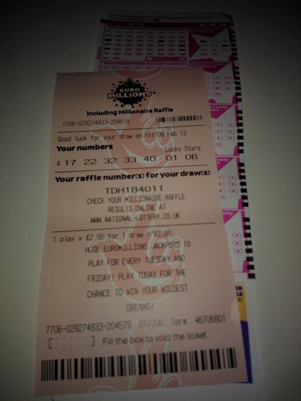 31st January 2013: Bought a Euro Millions.