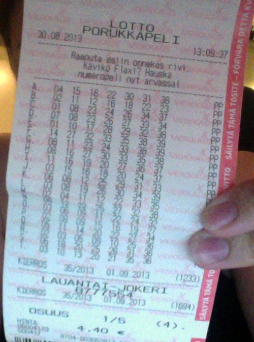 Done: AJ – 15.01.2013 – A lottery ticket of Finnish Nature Association – didn't get any money.