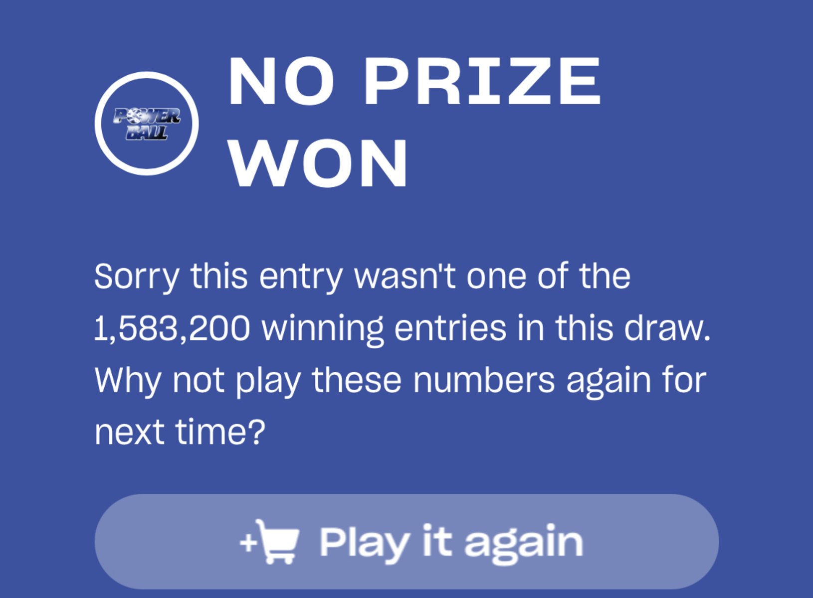 There was a billion dollar jackpot powerball so I felt I was losing money not to play. So I played and I lost. Bye bye $20.