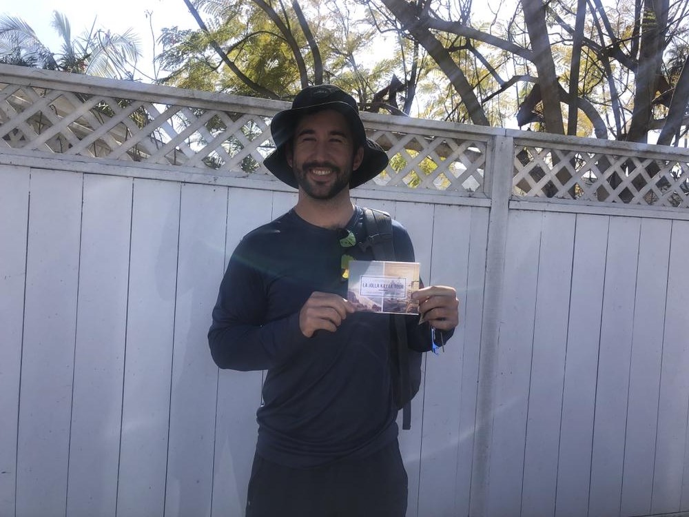 2/17: Kam and I went on a guided Kayak tour in La Jolla. We saw a Hawksbill Turtle poke it's head above the water and we saw a bunch of dolphins that came very close to us! The water was rough and a wave actually tipped over our kayak as we were trying to paddle out but over all it was an amazing experience and we loved being touristy in our own town!