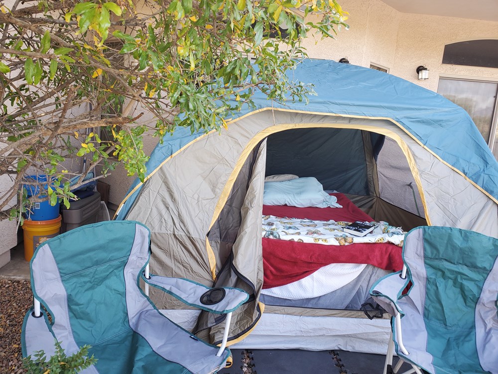 Sleep in a tent in the backyard