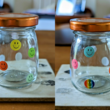 Brought a small jar from Poundland today and decorated it with smiley face stickers. Originally there were rubber bands in it but I took those out as I wanted a small jar to put all my notes in. Will be decorating the lid next! 😊